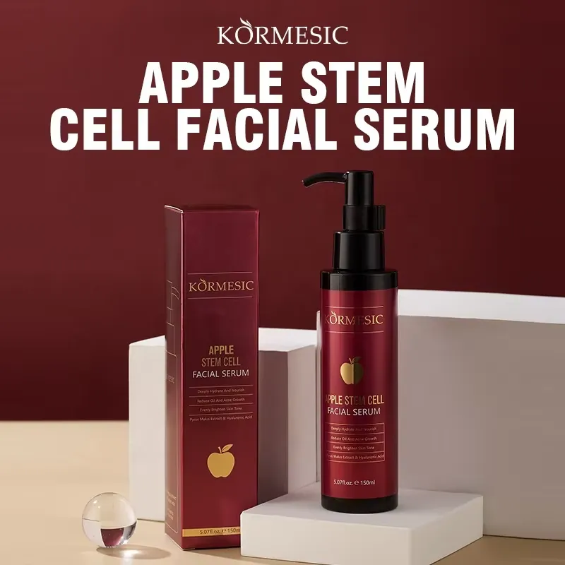Kormesic Apple Stem Cell Facial Serum (150ml) is a rejuvenating skincare essence powered by apple stem cell extract to help protect skin vitality and promote a youthful, radiant complexion. This lightweight, fast-absorbing serum deeply hydrates, smooths fine lines, and improves skin elasticity. With regular use, it helps strengthen the skin barrier, leaving your skin looking firmer, fresher, and more luminous.